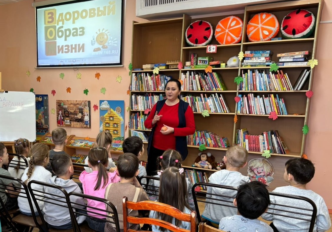 В Библиотеке – центре семейного чтения им. М. Шумилова прошла познавательная беседа «За здоровое поколение» с целью сохранения и укрепления здоровья. Участниками мероприятия стали воспитанники МБДОУ «Детский сад № 211».