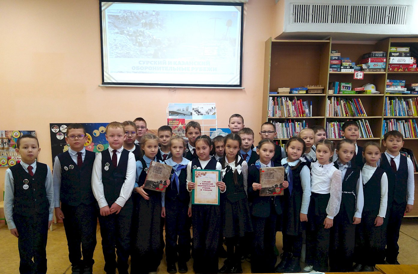 В ходе беседы ребята узнали о подвигах жителей Чувашской Республики при строительстве Сурского рубежа, о том, как создавалась линия обороны, в каких тяжелейших условиях пришлось работать в то время. В строительстве оборонительных рубежей принимали участие более 170 тысяч человек, протяженность рубежей составила более 380 километров.