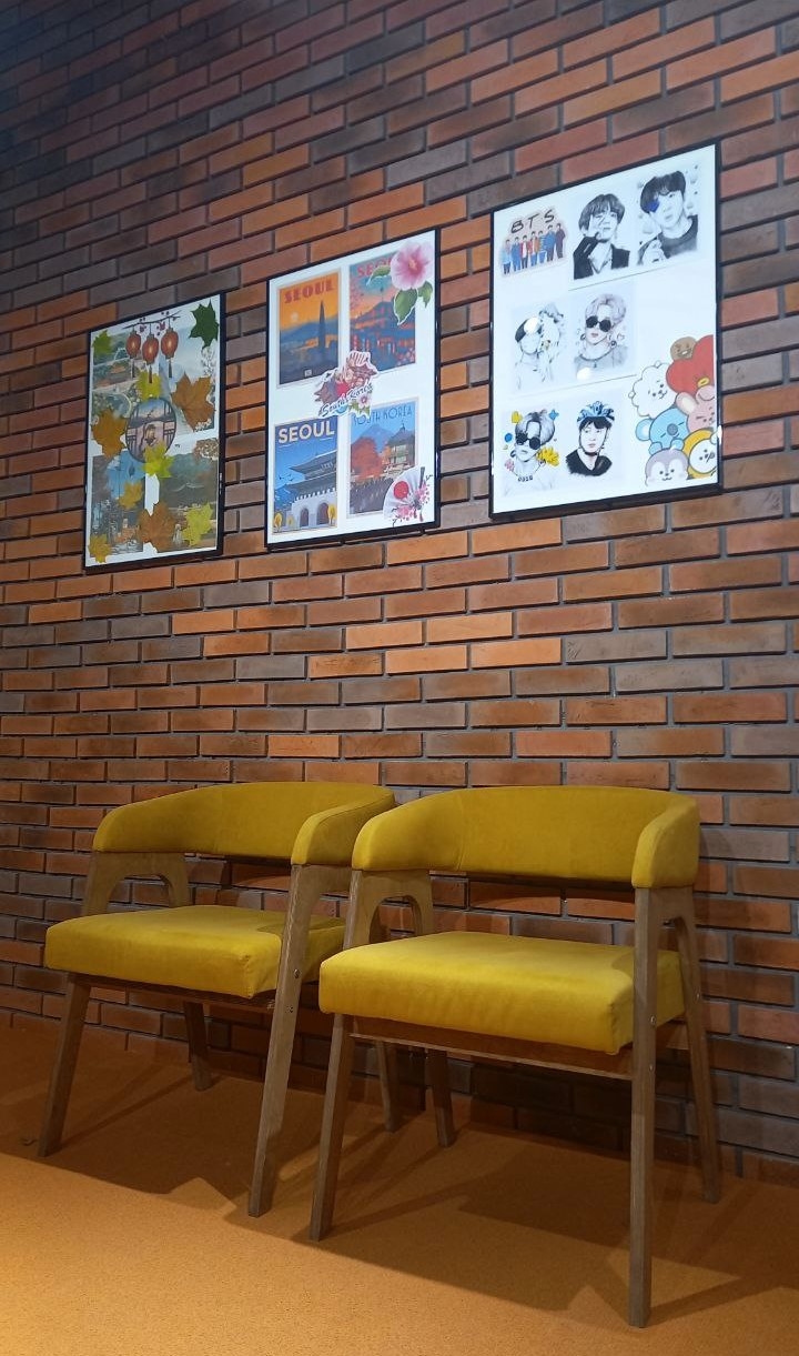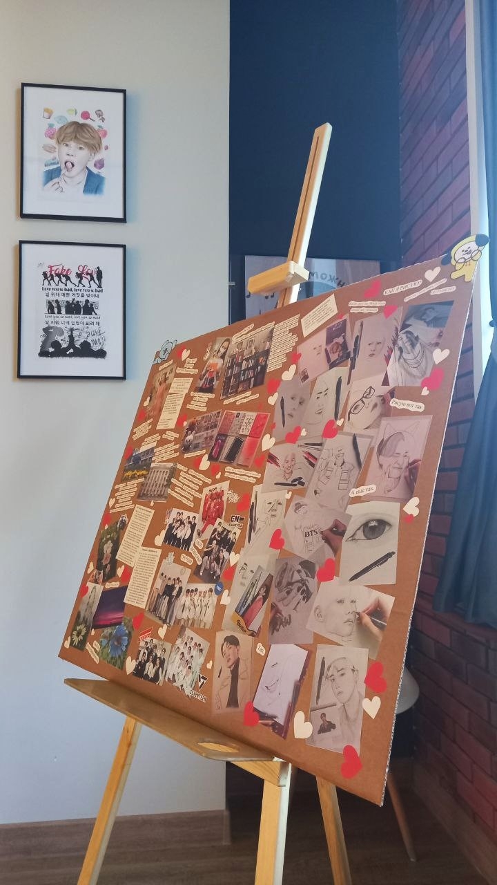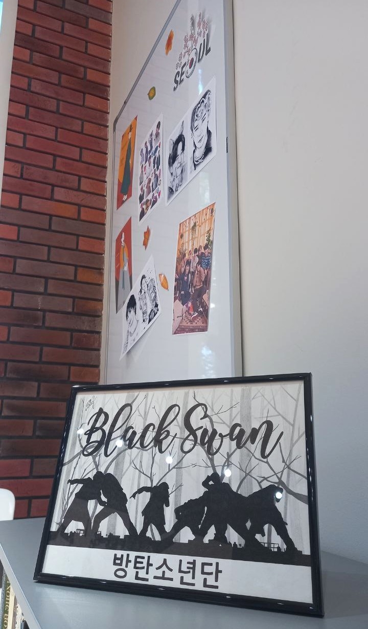 Особенностью выставки стали портреты, посвященные участникам всемирно известной южнокорейской музыкальной группы BTS (БиТиЭс). Эти выразительные рисунки покорили сердца многих любителей искусства и музыки, став настоящим украшением Молодежного пространства «Х.Б.К.».