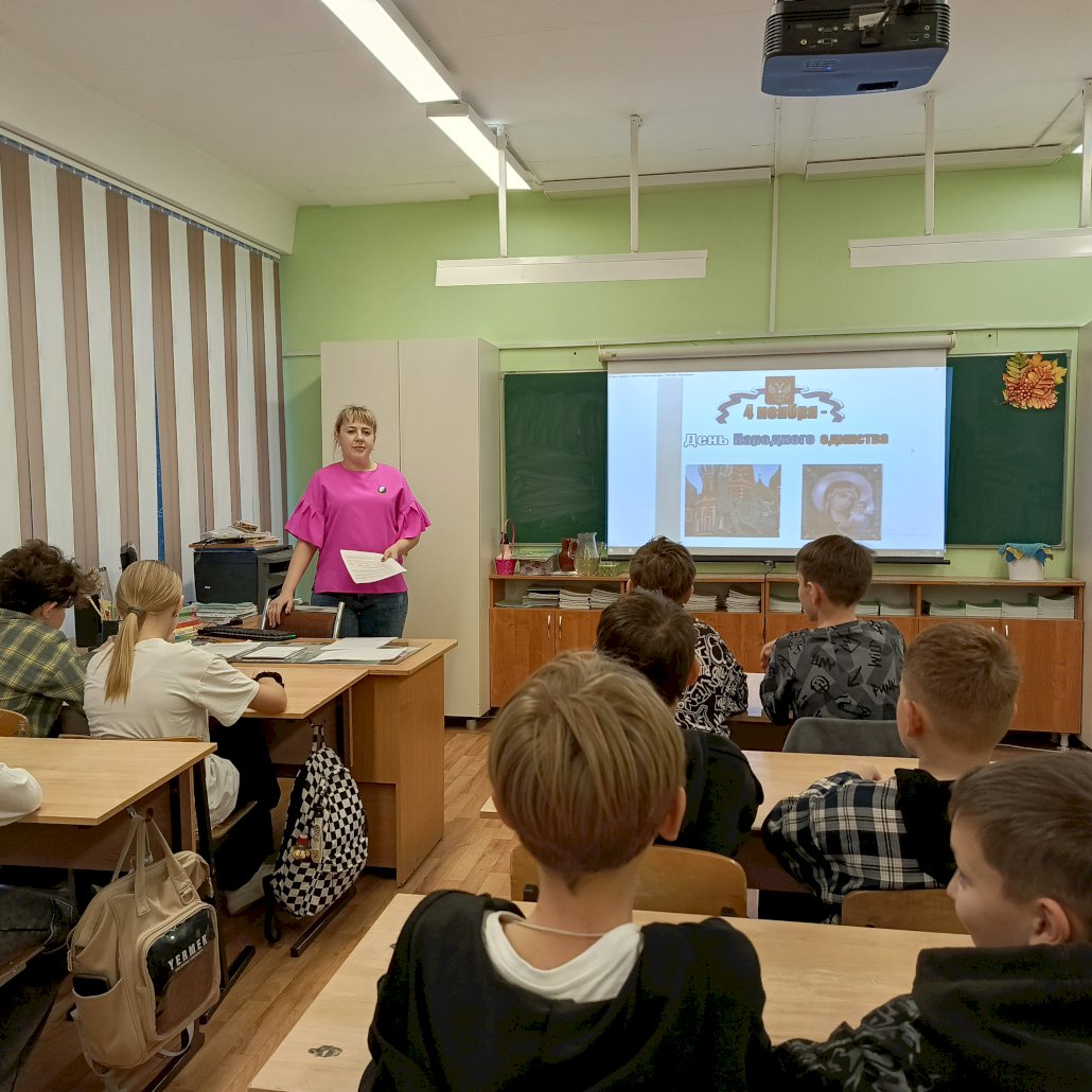 28 октября в преддверии праздника сотрудники отдела отраслевой литературы Центральной городской библиотеки им. В. Маяковского провели мероприятие для учащихся 6-го класса СОШ № 39. Познакомили их с историей появления праздника Дня Народного Единства. Затем ученики посмотрели интересный видеоролик, рассказывающий о подвигах героев тех времен — Кузьме Минине и Дмитрии Пожарском.