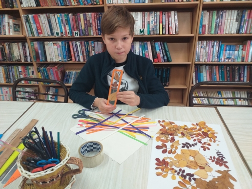 Разноцветные листья стали основой для изготовления полезного аксессуара для книголюбов — оригинальной книжной закладки в технике «гербарий», придающей неповторимый уют осени в чтении книг, — на увлекательном мастер-классе, который прошел в ЦГБ им. В. Маяковского для мальчишек и девчонок в дни осенних каникул.