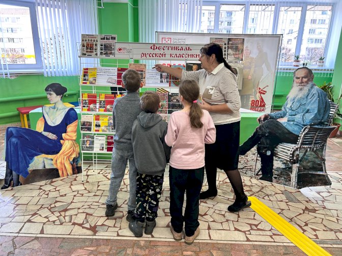 В фойе библиотеки посетителей встречала книжно-иллюстративная выставка «Фестиваль русской классики», где сотрудник отдела книгохранения знакомила с многообразием произведений русской классической литературы.