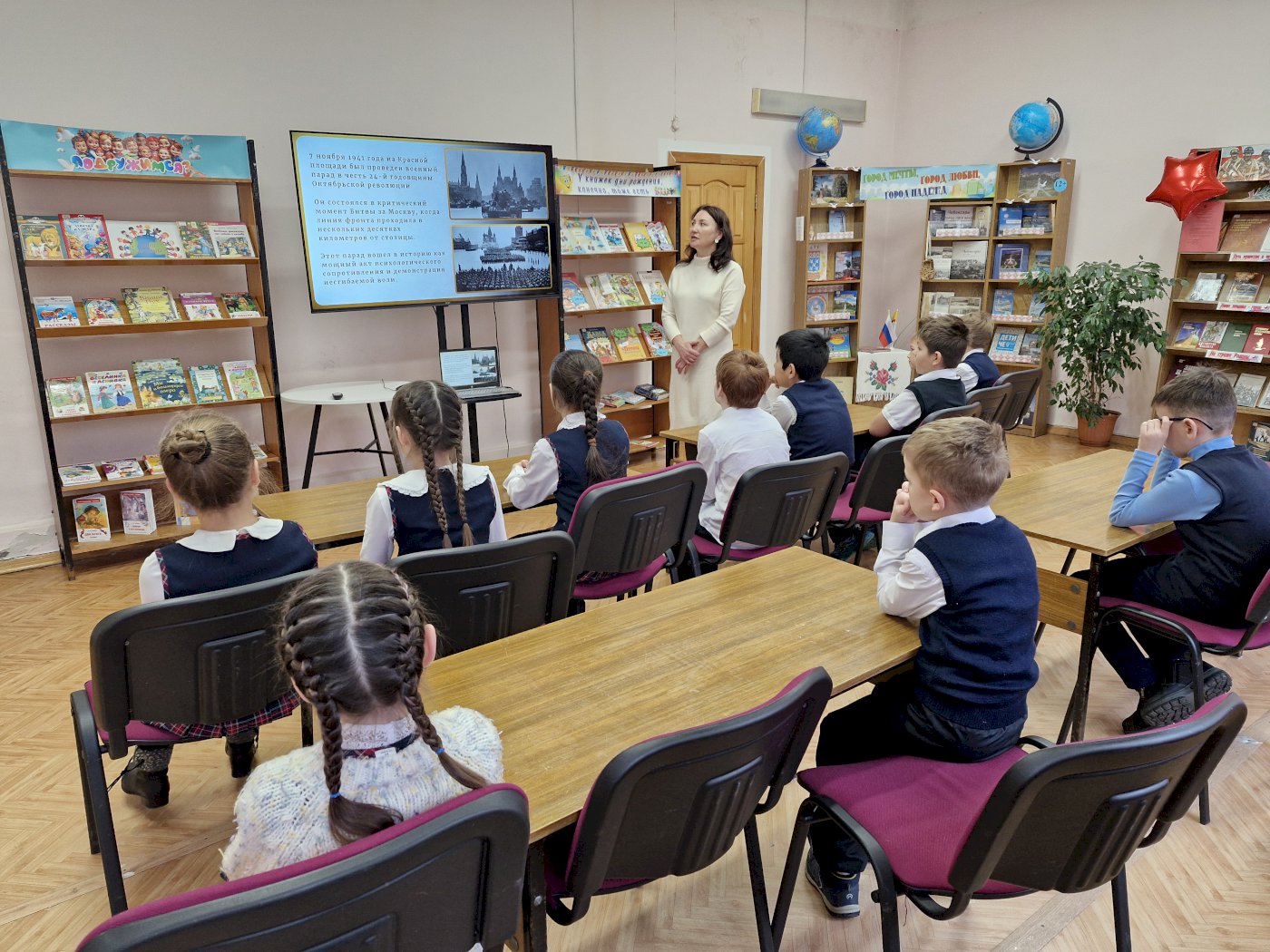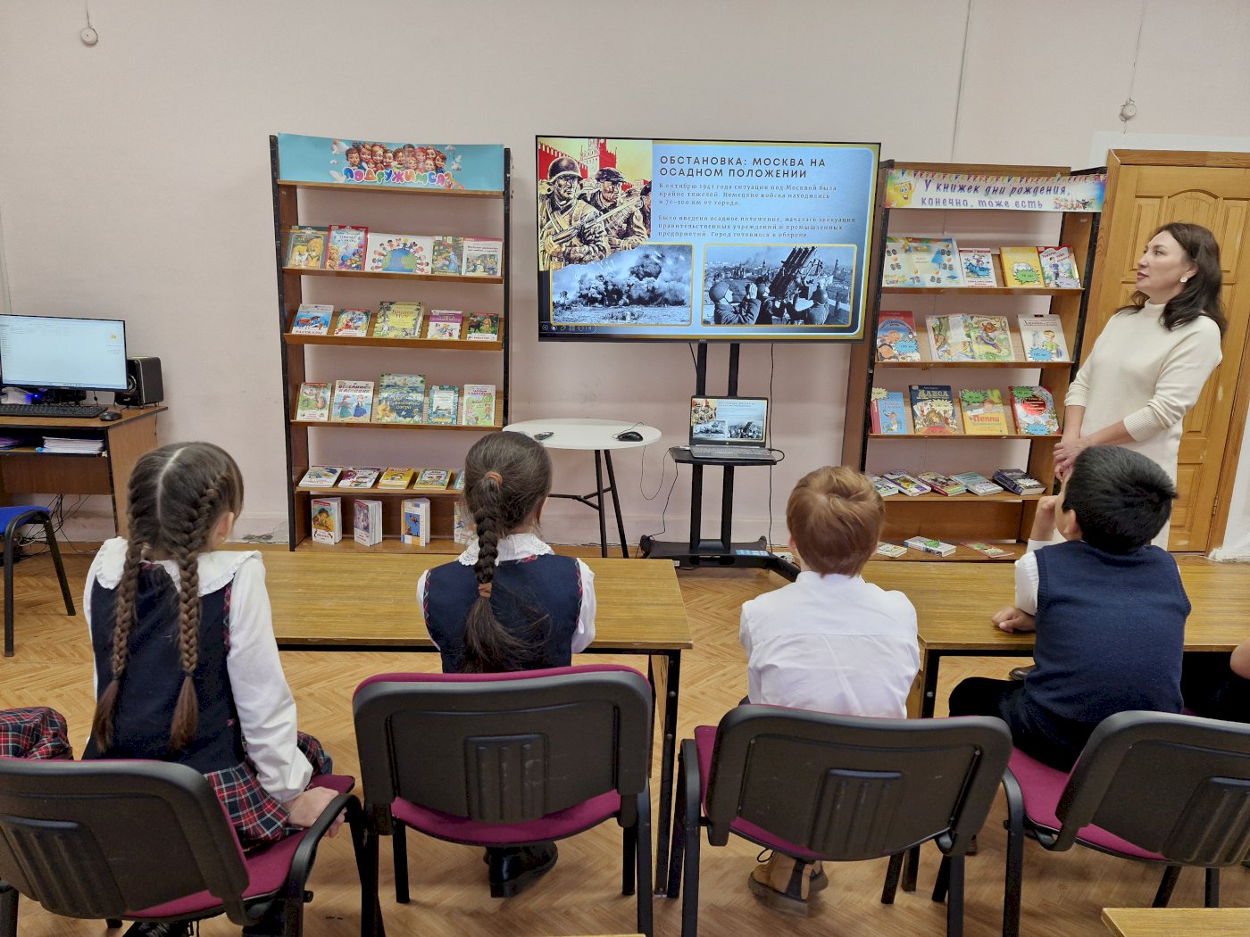 Дети узнали историю проведения парада, как готовилось это мероприятие в условиях военного времени, о невероятных сложностях по обеспечению безопасности участников парада. Несмотря на тяжелейшую обстановку на фронте, когда немецкие войска стояли у самых ворот столицы, руководство страны приняло решение не отменять традиционное праздничное шествие. Библиотекарь подчеркнула, что парад действительно был легендарным: многие военные подразделения прибыли на парад с фронта и после его окончания отправились прямиком на фронт. Парад имел огромное значение по поднятию морального духа армии и всей страны, показав всему миру, что Москва не сдается, и боевой дух армии не сломлен.