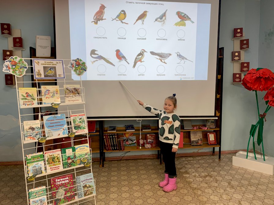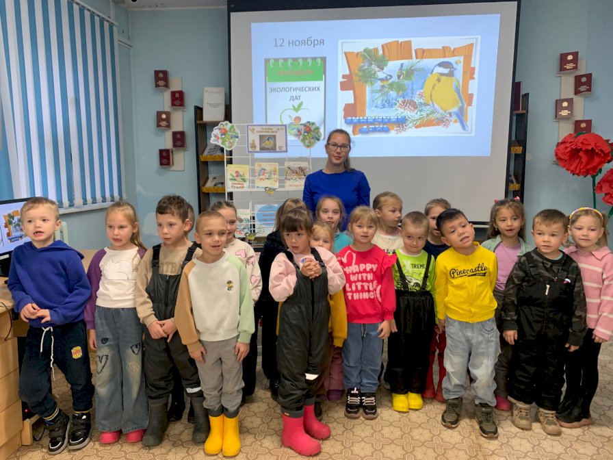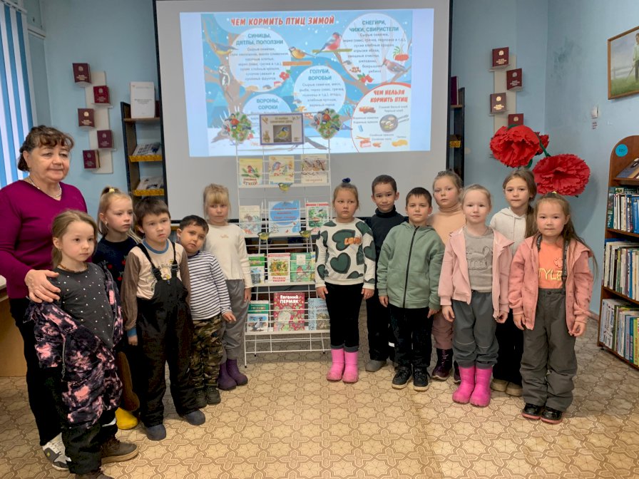В детской библиотеке им. Х. Степанова для воспитанников детских садов № 30 и 206 прошёл информационный час под названием «Птички-невелички — жёлтые синички». Библиотекарь рассказала детям о зимующих птицах, их местах обитания и питании, а также о пользе этих птиц. Ребята узнали, что зима — тяжёлое время для птиц, когда им холодно и голодно. Чтобы согреться, им нужно много еды, особенно зимой. Считалось, что именно в Синичкин день птицы из лесов прилетают ближе к жилью человека, чтобы пережить холода, подкрепиться, так как рассчитывают на помощь людей. К сожалению, из десяти синиц только две выживают до весны. Наша задача — не дать зимующим птицам погибнуть от голода, сделать для них кормушки и подкармливать их. Дошколята удивились, узнав, что одна кормушка может спасти примерно 50 синиц.