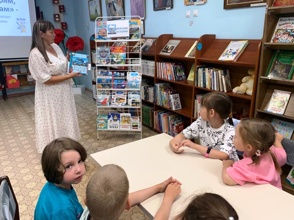 Библиотекари сделали обзор литературы по представленной книжной тематической выставке. Увлекло детей громкое чтение отрывка рассказа «Весёлый купец» Бориса Житкова о купце-весельчаке Антонии, торгующем на парусном судне «Не Горюй». Везло купцу в торговых делах, мог он продать даже речной песок и быстрый пароход обогнать. В завершении ребятам предстояло из листа бумаги сделать кораблик и назвать его. Ведущая, прощаясь и желая благополучия, подметила: «Как вы яхту назовете, так она и поплывет».