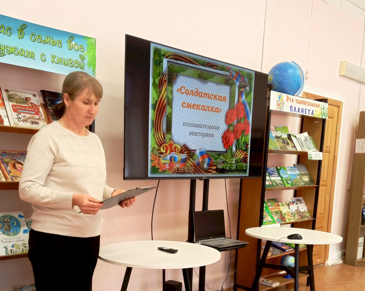 Затем участники мероприятия смогли проверить свои знания в области истории русской армии, на знание военных слов, профессий, названия головных уборов военнослужащих, пословиц о доблестной армии в познавательной викторине «Солдатская смекалка».