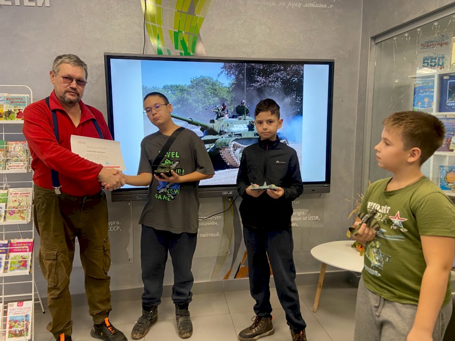 В библиотеке имени В.Чаплиной состоялось открытие интерактивной выставки «ПАРАД ВОЕННОЙ ТЕХНИКИ», в рамках Года защитника Отечества в России, 80-летия Победы в Великой Отечественной войне и Года Победы и Патриотизма в Чувашской Республике. Выставка организована в честь наших героев и участников специальной военной операции сегодня и в память о подвигах всех наших предков, сражавшихся в разные исторические периоды за Родину.Ребята из кружка моделирования и конструирования «Арсенал Хобби» приняли участие в исторической беседе «Вехи памяти и Славы», где представили свои работы.
