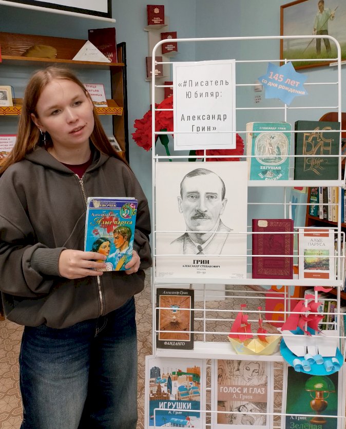 С 18 по 22 августа в Детской библиотеке им. Х. Степанова работает книжная выставка «#ПисательЮбиляр: Александр Грин» к 145-летию русского писателя. Александр Степанович Грин — главный мечтатель литературы, создавший в своих произведениях волшебную страну Гренландию, где разбиваются о скалы кудрявые волны и царит океан.