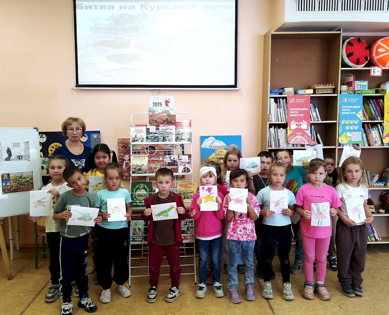 В битве за Курск участвовало шесть тысяч танков, она является крупнейшей танковой битвой в истории. В Курской битве впервые появились мощные фашистские танки «Тигр» и «Пантера», с ними успешно сражались советские танки Т-34. Библиотекарь прочитала рассказ Владимира Железникова «В старом танке». Одновременно с танковыми поединками на земле в небе почти непрерывно шли воздушные бои, в которых участвовал легендарный Алексей Маресьев. Рассказ о подвиге легендарного летчика сопровождался демонстрацией видеоролика «Песня о настоящем человеке».
