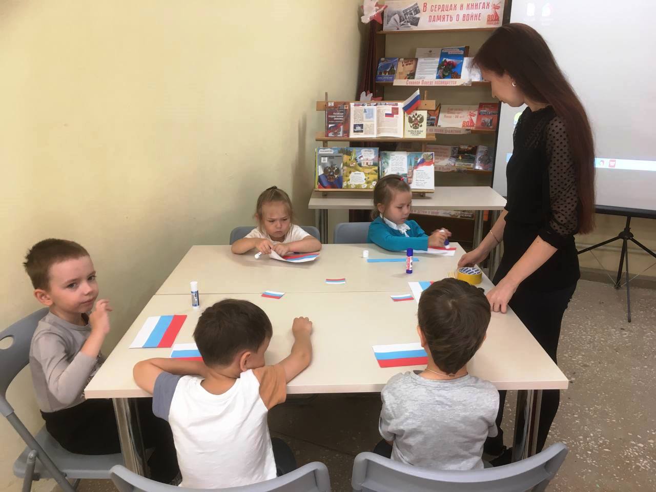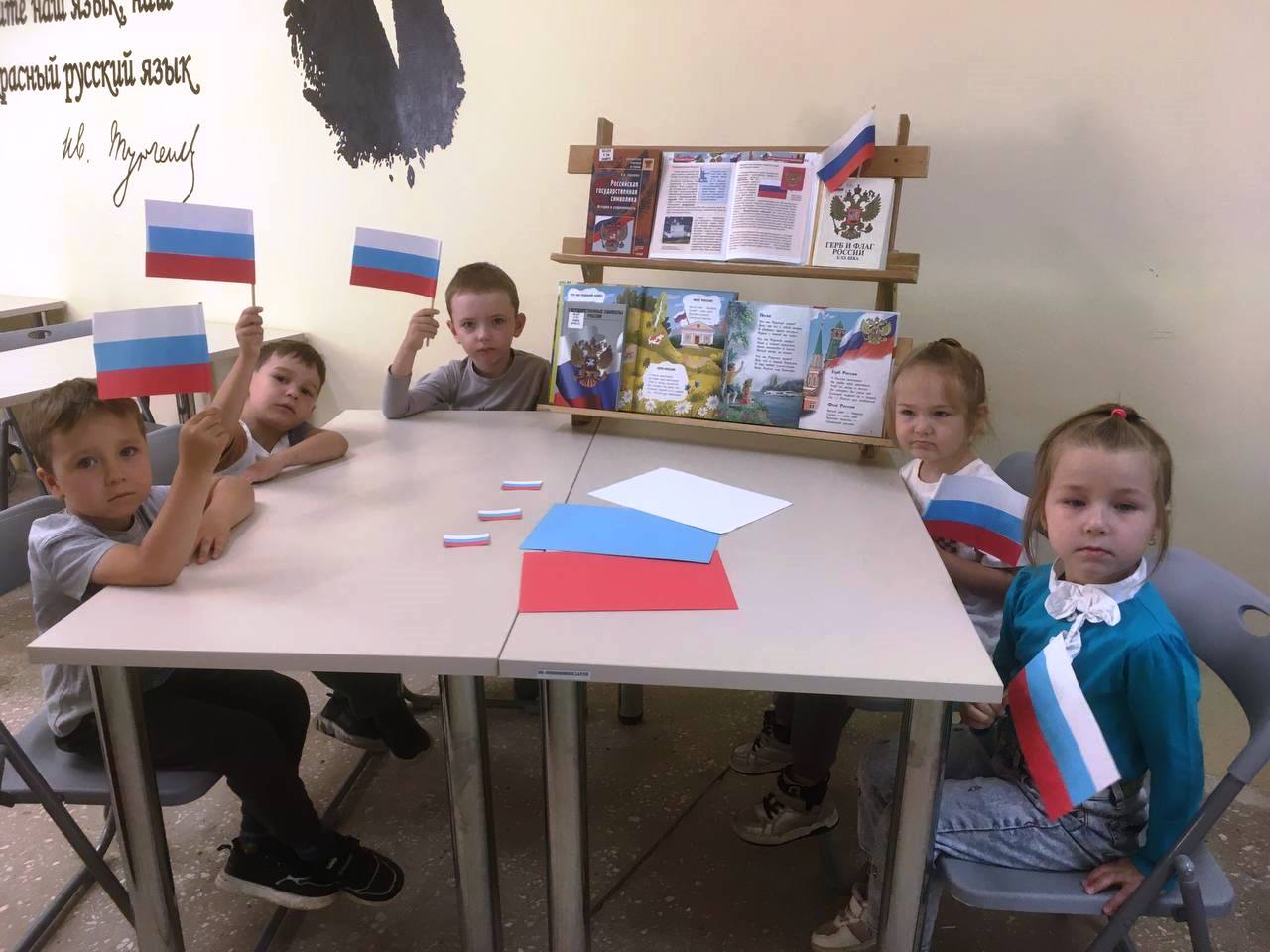 В библиотеке им. И.Тургенева участниками мероприятия, проведенного в рамках Всероссийской акции #ЦветаРодины, приуроченной к празднованию Дня Государственного флага Российской Федерации, стали воспитанники детского сада №2 г. Чебоксары, которые побеседовали о том, почему этот праздник важен для нашей страны; вспомнили символы Российской Федерации и сделали флажочки-триколоры на творческом мастер-классе «Гордо реет флаг державный».