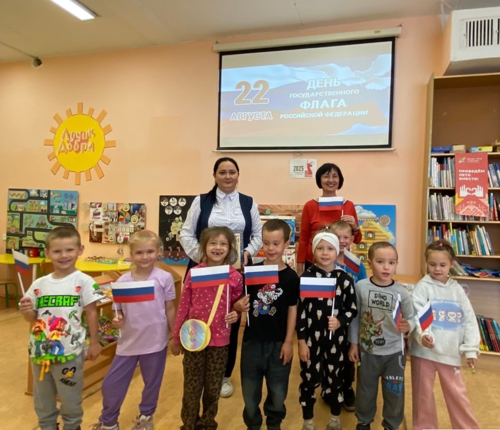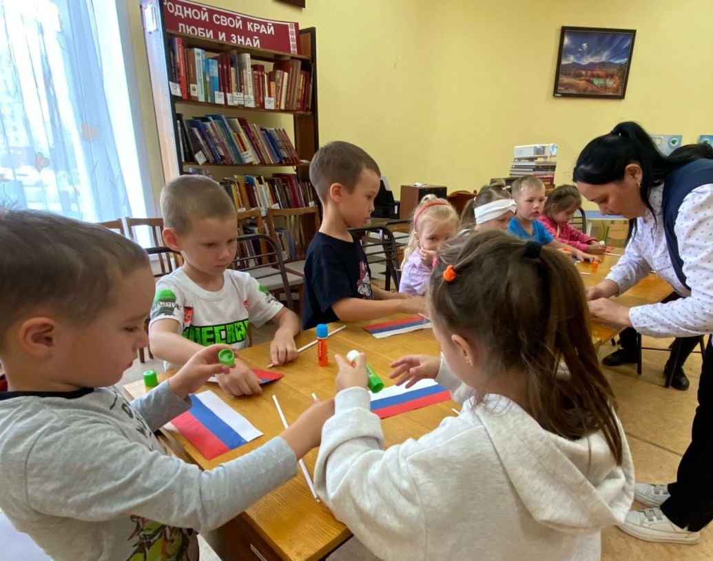 В рамках знаменательной даты в Библиотеке – центра семейного чтения им. М. Шумилова прошла познавательная беседа и мастер-класс «Три цвета России». Участниками мероприятия стали воспитанники МБДОУ «Детский сад № 11».