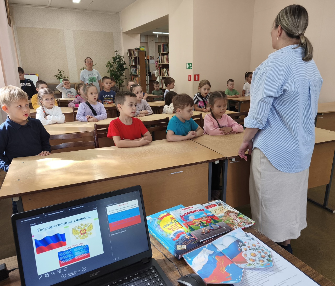 22 августа в нашей стране отмечают День Государственного флага Российской Федерации - праздник, который помогает объединить общество на вечных ценностях, как патриотизм, государственность, и вызывает в ее гражданах чувство гордости за свою великую страну, за соотечественников. В рамках Всероссийской акции #ЦветаРодины, приуроченной к празднованию Дня Государственного флага Российской Федерации, в библиотеке им. К. Иванова для воспитанников МБДОУ «Детский сад №106» г. Чебоксары прошел познавательный час. Библиотекарь предложила ребятам отправиться в виртуальное путешествие по страницам истории символов нашей страны: герба, флага и гимна, в ходе которого дети познакомились с историей праздника, узнали, что означают цвета российского флага, вспомнили пословицы о Родине. Дети с удовольствием отвечали на загадки, познакомились с книгами о геральдике, представленной на выставке-просмотре «Геральдика моей страны».