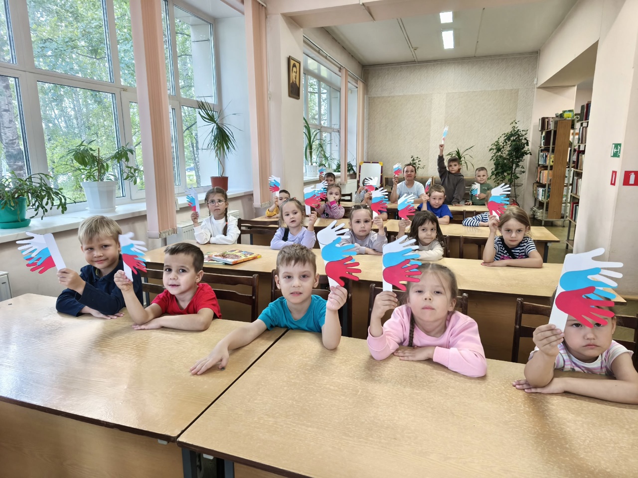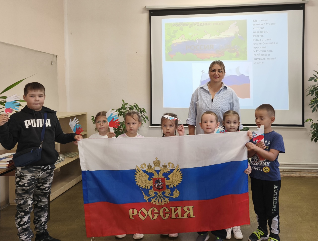 В заключение мероприятия, после просмотра видеопрезентации, ребята поучаствовали в тематическом мастер-классе, где своими руками изготовили флаг из бумажных ладошек. Это занятие помогло детям не только проявить фантазию и художественные способности, но и почувствовать свою сопричастность к великой стране.