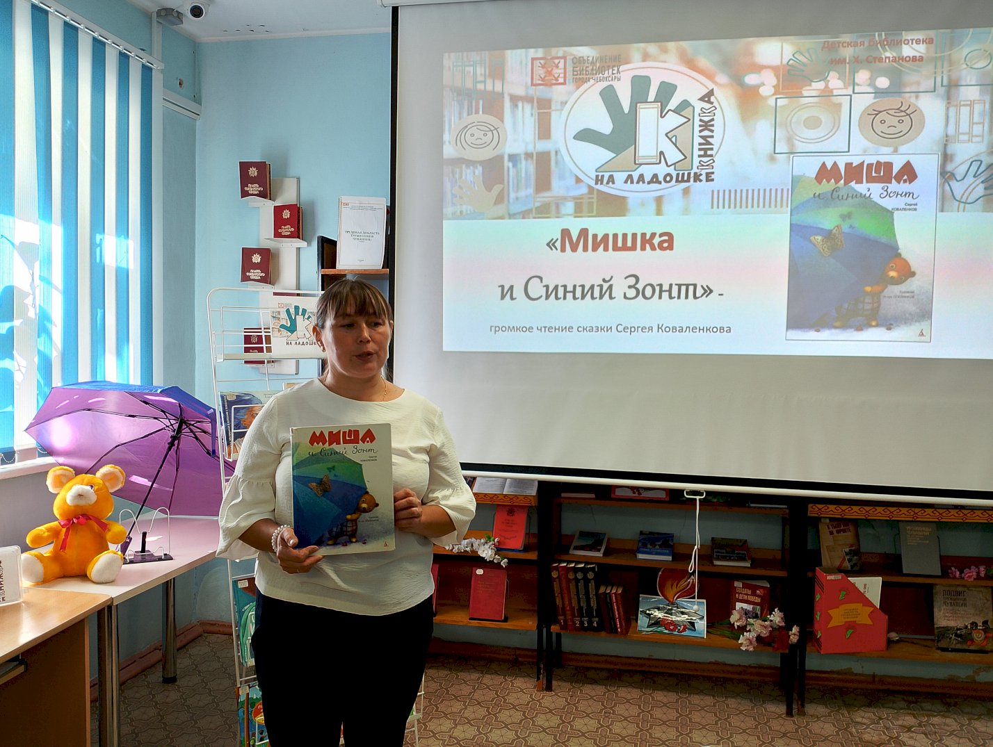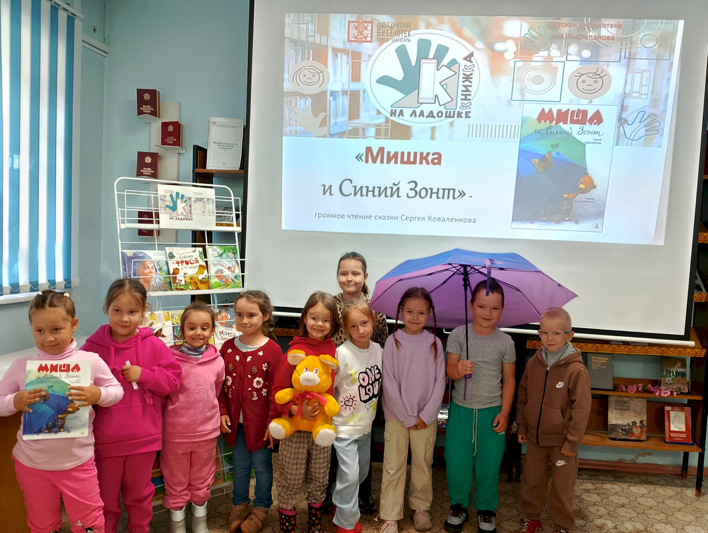 В этом году участниками события стали ребята из двух корпусов Детского сада № 206 «Антошка». Сотрудники библиотеки организовали для маленьких читателей громкое прочтение забавной и познавательной сказки Сергея Коваленкова «Миша и Синий зонт».