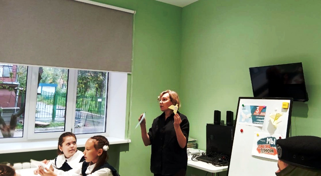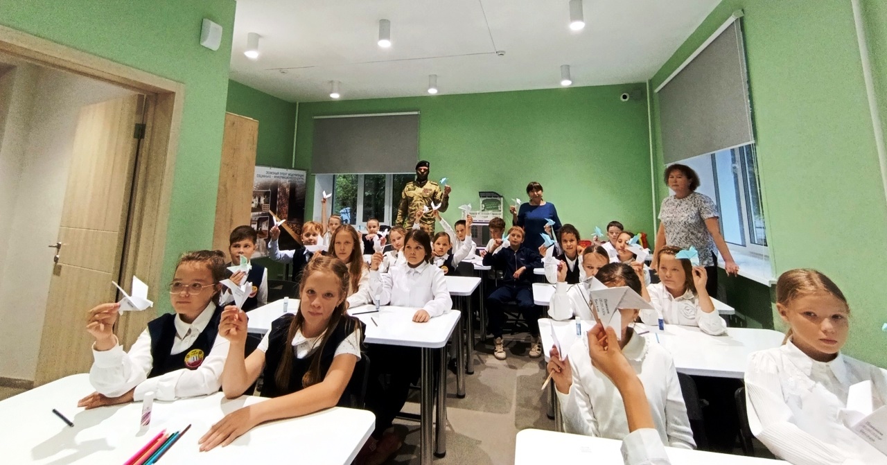 Под руководством сотрудников библиотеки им. Л. Агакова в память о жертвах террора мальчики и девочки сделали своими руками в технике оригами бумажных голубей.
