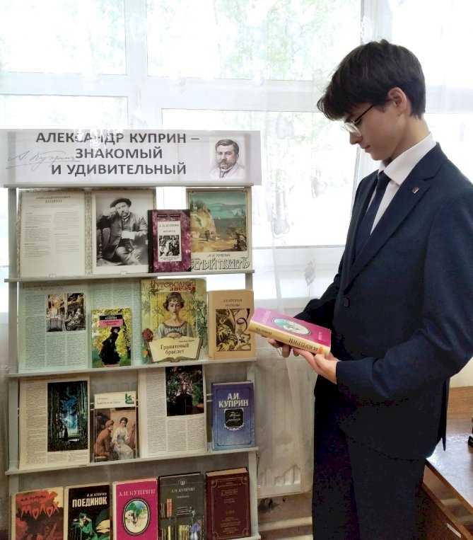 В библиотеке К. Иванова прошла выставка-обзор: «Александр Куприн – знакомый и удивительный». Данная выставка посвящена 155-летию со дня рождения Александра Ивановича Куприна (1870-1983), русского писателя, переводчика. На выставке были представлены такие книги, как: Александр Иванович Куприн «Рассказы», «Поединок», «Гранатовый браслет», «Белый пудель», «Чудесный доктор Ю-ю», «Легче воздуха», «Лирические новеллы» и другие.