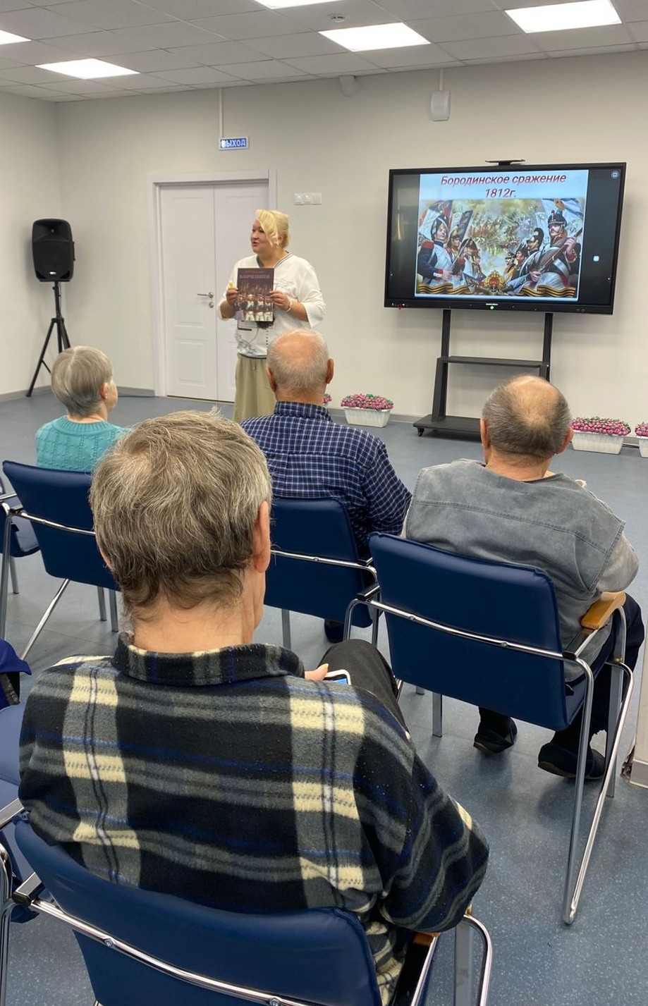 Для жителей Комплексного центра социального обеспечения населения города Чебоксары сотрудник библиотеки – центра семейного чтения им. М. Шумилова провела час истории «Мы помним день Бородина».