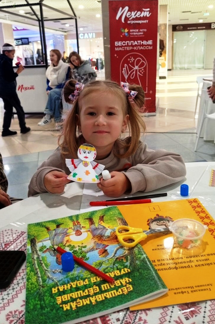 Специально для маленьких гостей был проведен мастер-класс «Чăваш пики» по изготовлению очаровательных куколок из бумаги в чувашских национальных костюмах.