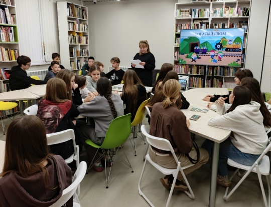 В библиотеке — центре семейного чтения им. М. Трубиной для учащихся 8 класса гимназии № 1 состоялась финансовая игра «Богатый гном», организованная специалистами школы ФинГрам города Чебоксары по обучению детей финансовой грамотности.
