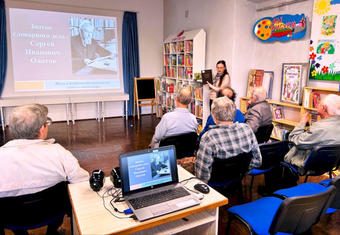 Сотрудники отдела художественной и детской литературы представили электронную презентацию о жизни и деятельности Сергея Ожегова и рассказали о главном его труде — «Словаре русского языка», впервые изданном в 1949 г. и включавшем 57 тысяч слов.