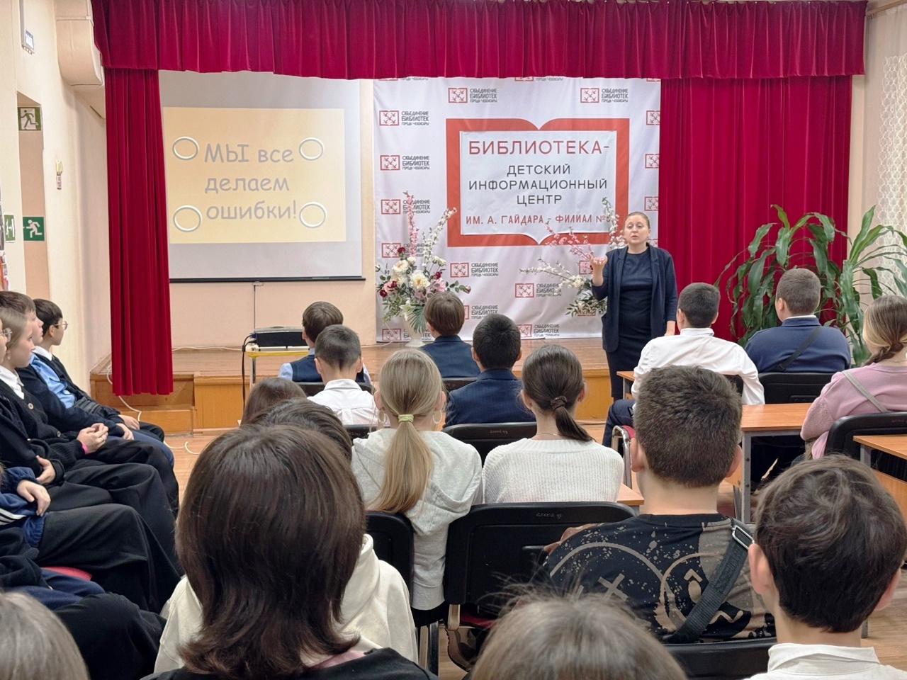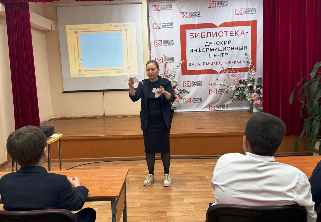 Ученики 7-х классов МБОУ «СОШ № 22 им. Героя РФ Н. Ф. Гаврилова» в библиотеке им. А. Гайдара приняли участие в увлекательной встрече с медицинским психологом Наркологической службы Минздрава Чувашии Дарьей Дмитриевной Петровой. Это мероприятие стало ярким событием учебного процесса и оставило глубокий след в сердцах школьников.