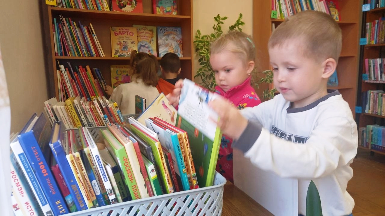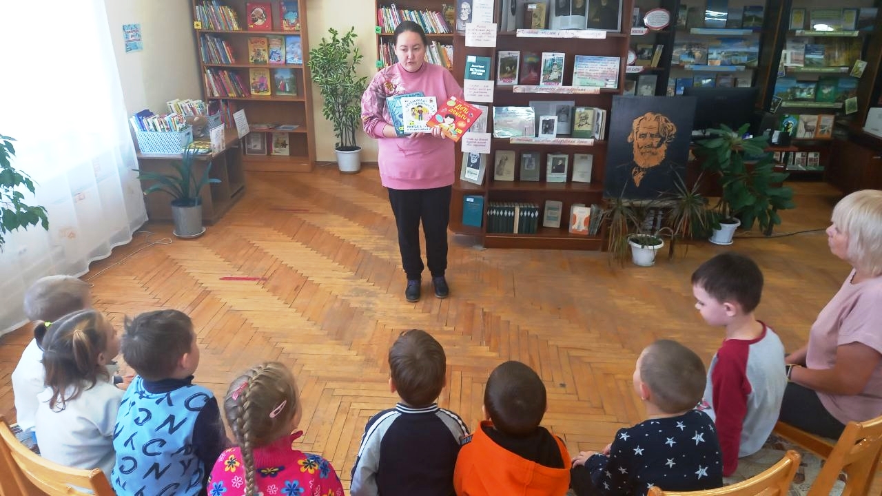 Для детей библиотекари провели познавательную экскурсию по библиотеке — рассказали, какие бывают книжки и как правильно их читать: не рвать, не мять, не пачкать и т. д.