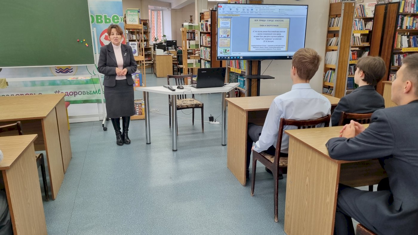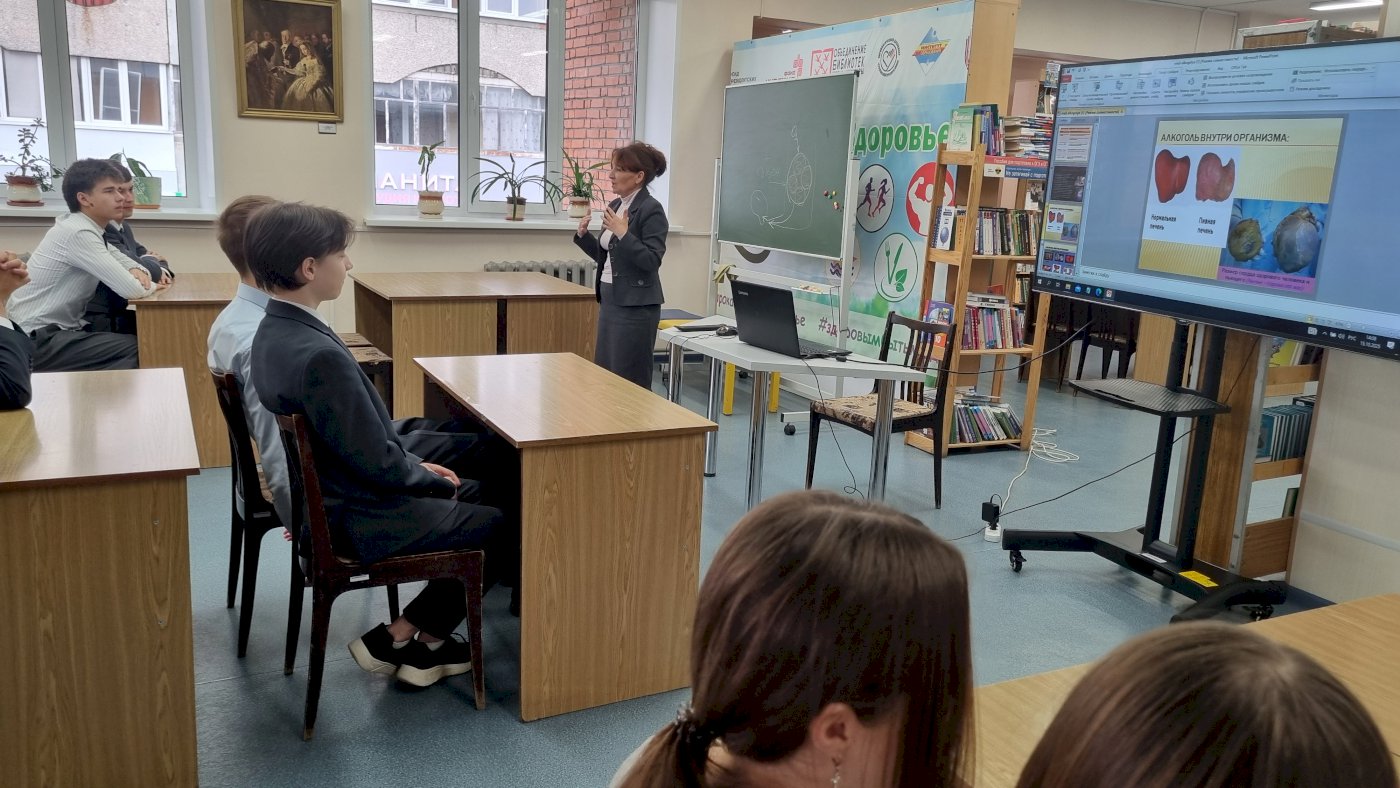 Антонина Михайловна провела беседу с учениками 10-го класса гимназии №1, рассказав о негативных последствиях употребления алкоголя для физического и психического здоровья молодых людей. Она раскрыла механизмы воздействия спиртосодержащих напитков на организм подростка, подчеркнув важность своевременного отказа от вредных привычек.