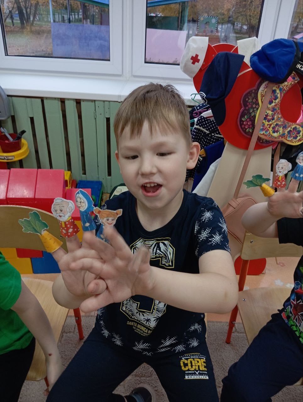 Ребята вспомнили всех персонажей сказки, правильно расставив их по местам, потом устроили настоящий пальчиковый театр и весело провели познавательные игры-головоломки «Кто лишний?» и «Чья тень?».