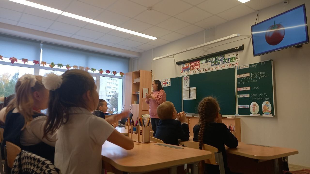 Детям очень понравились «съедобные» персонажи. Библиотекарь решил проверить, хорошо ли первоклассники различают овощи, фрукты и ягоды. Так ребята приняли участие во «Вкусной викторине».