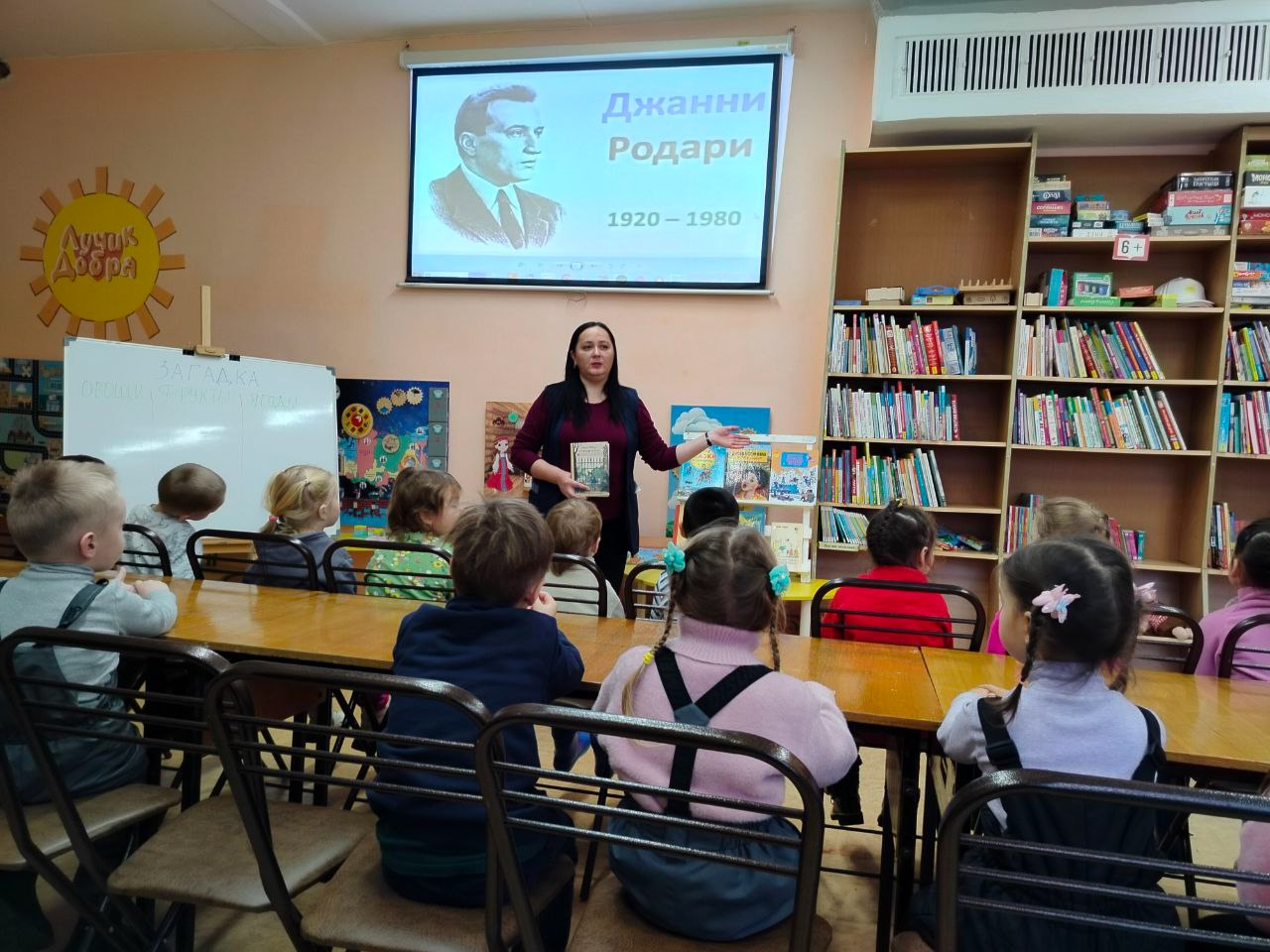В Библиотеке — центре семейного чтения им. М. Шумилова провели литературно-игровой час «Волшебный мир Джанни Родари». Участниками мероприятия стали воспитанники МБДОУ «Детский сад № 172».