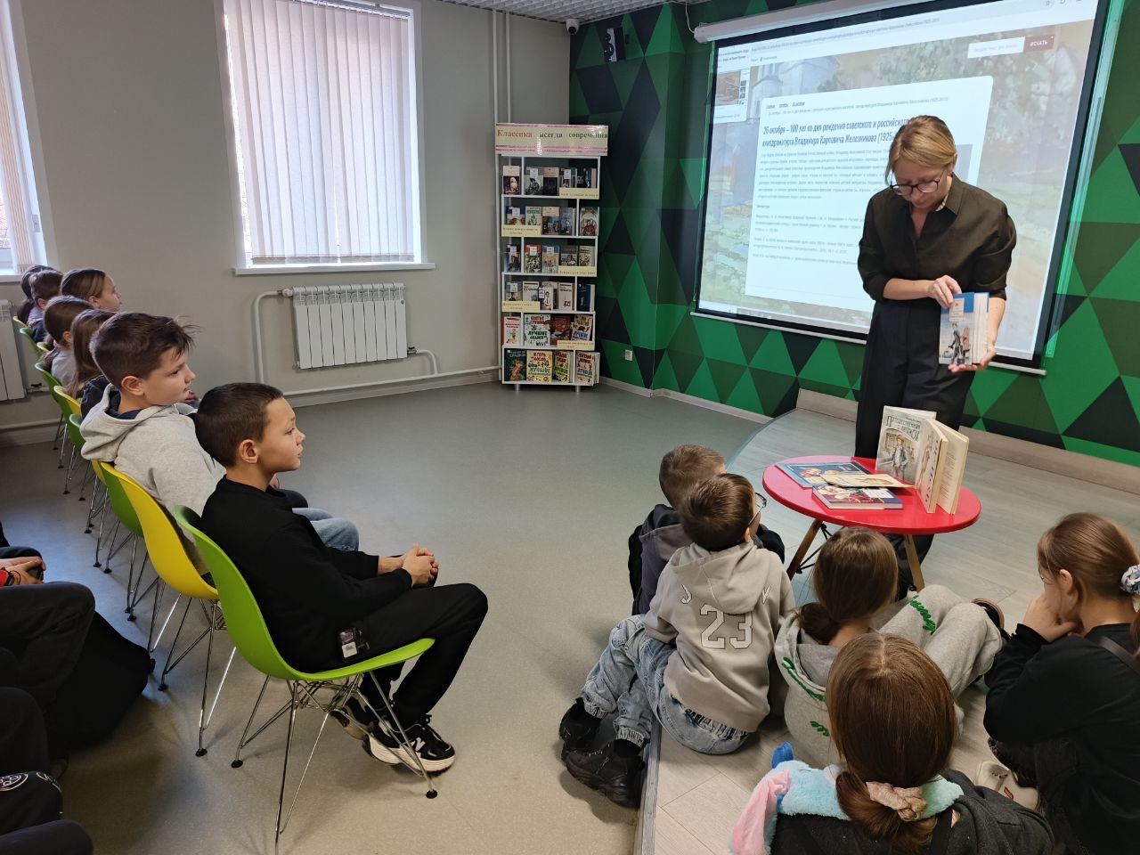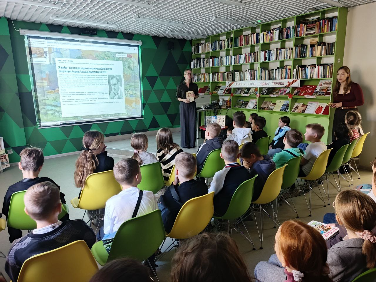 В библиотеке-центре семейного чтения им. М. Трубиной, в рамках цикла мероприятий «Фестиваль русской классики — 2025», для ребят из гимназии № 2 прошёл литературный час, посвящённый 100-летию со дня рождения писателя, кинодраматурга Владимира Железникова.