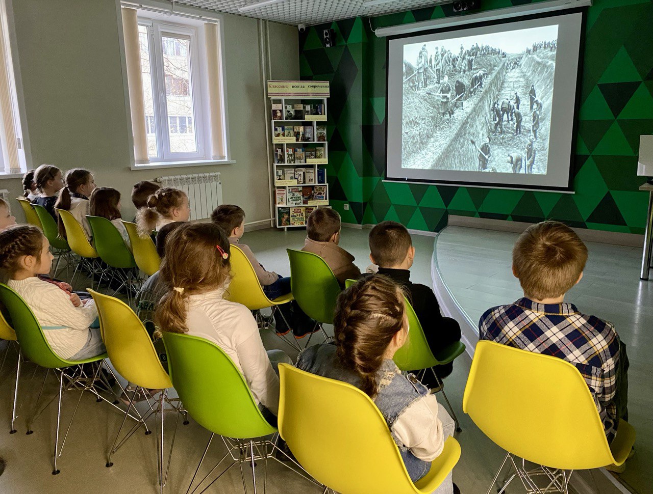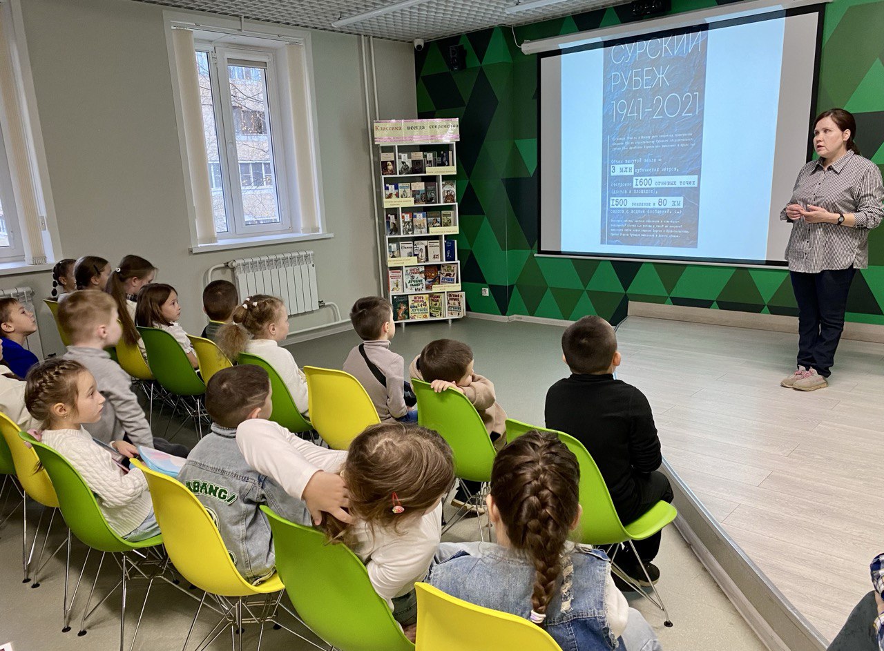 В библиотеке им. М. Трубиной состоялось познавательное мероприятие для первоклассников — историческое досье, посвящённое подвигу строителей Сурского рубежа. Перелистывая страницы истории, ребята узнали: