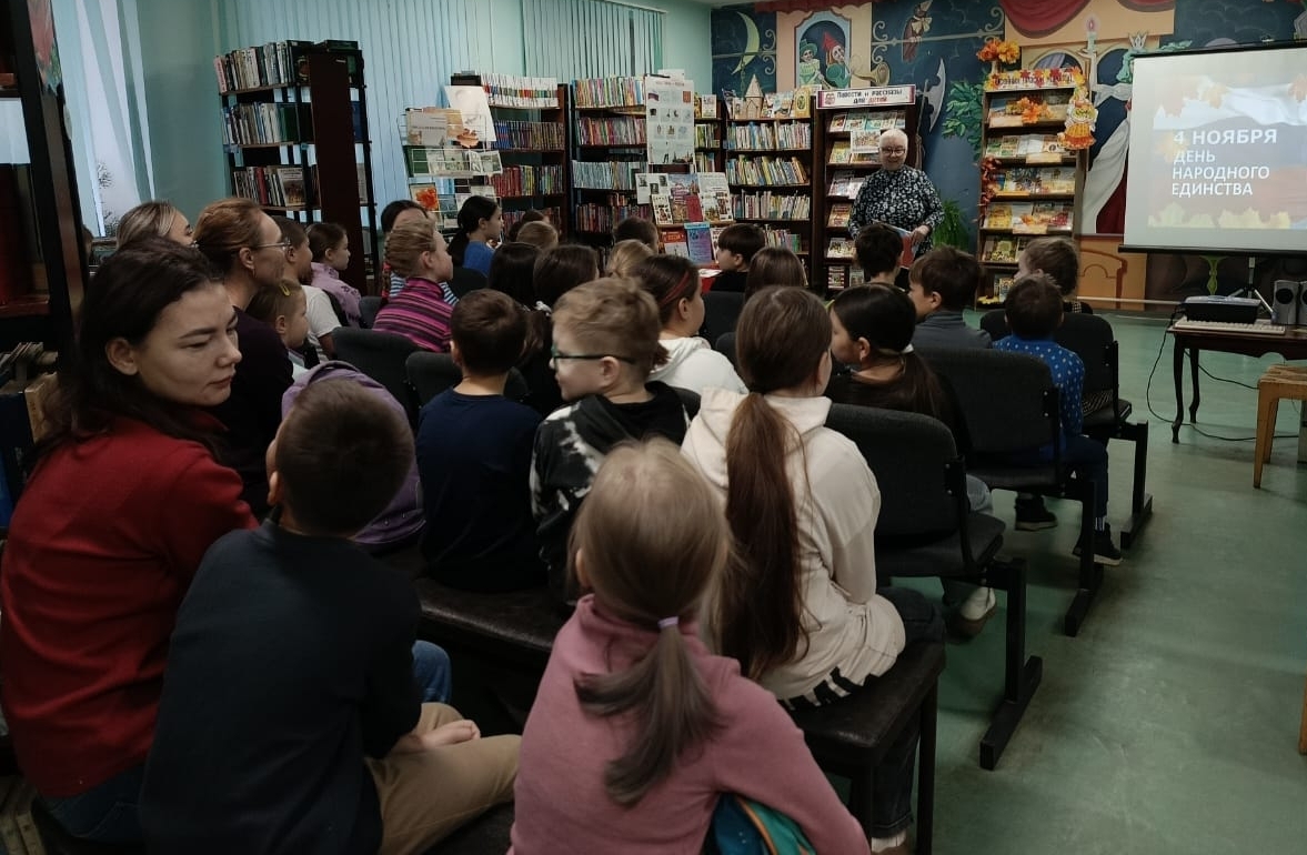 В рамках «Фестиваля русской классики-2025» и в преддверии празднования Дня народного единства в Молодежной библиотеке им. К. Чуковского для учащихся 3-4-х классов средней школы №2 прошел исторический экскурс «Когда мы едины – мы непобедимы».