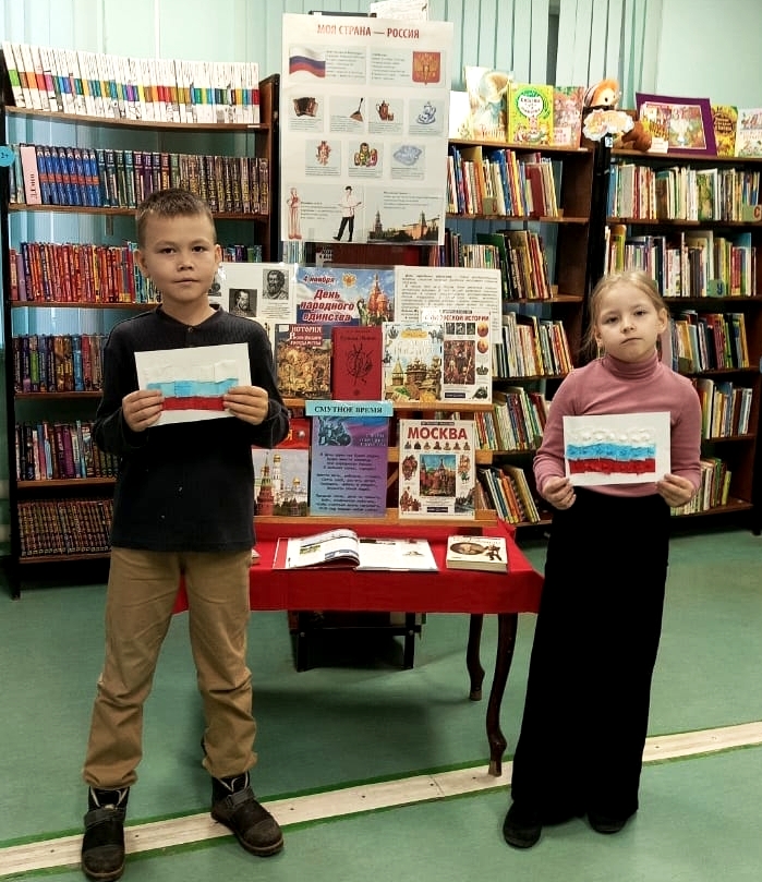 В читальном зале ребята приняли участие в мастер-классе по созданию государственного символа России – флага РФ.