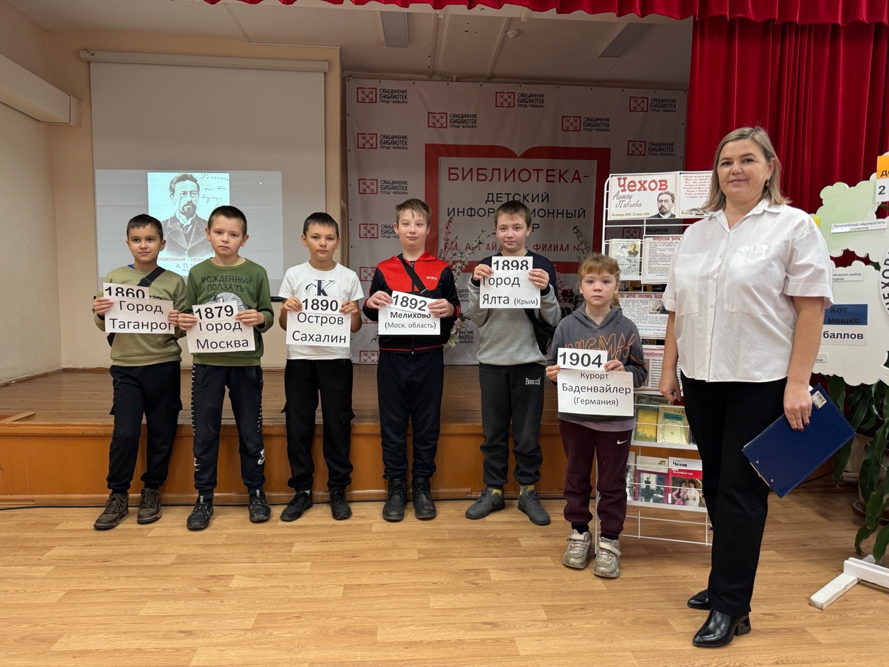 После просмотра познавательного видео о писателе, студенты ГАПОУ «Чебоксарский техникум ТрансСтройТех» и учащиеся МБОУ «СОШ № 22 им. Героя РФ Н. Ф. Гаврилова» прошлись по «чеховским местам», используя предложенные карточки сопоставили указанные даты с периодами из жизни классика.