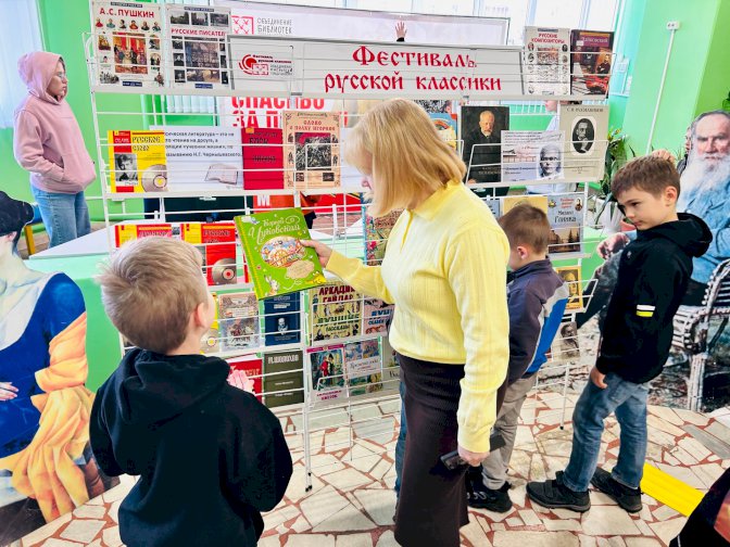 В фойе библиотеки посетителей встречала книжно-иллюстративная выставка «Фестиваль русской классики», где сотрудник отдела книгохранения знакомила с многообразием произведений русской классической литературы.