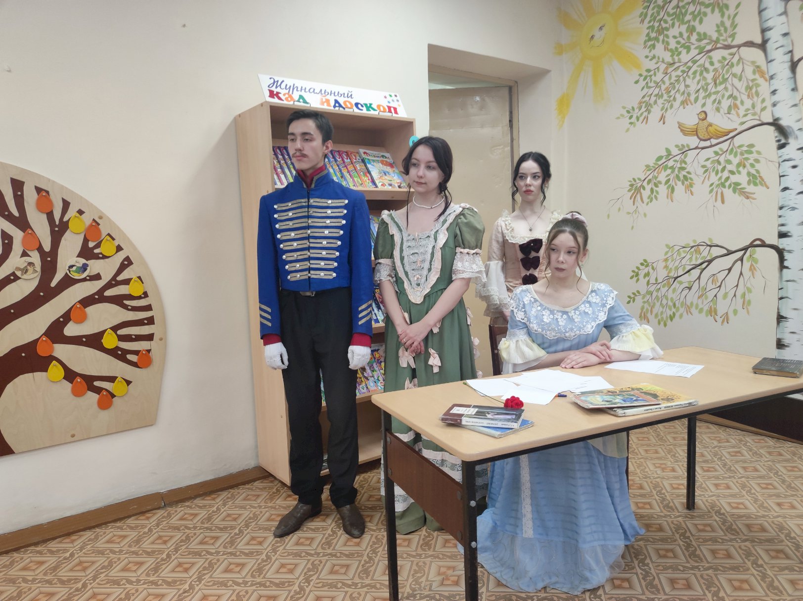 Вечер начался с живого исполнения классической музыки. Учащийся музыкальной школы Ярослав Григорьев сыграл произведение для классической гитары. Затем участники вечера, перевоплотившись в поэтов, прочитали стихи А.С. Пушкина, С.А. Есенина и М.Ю. Лермонтова. Зрители вспомнили сказки Александра Сергеевича Пушкина, собрав пазлы, состоявшие из картинок и коротких текстовых описаний к ним.