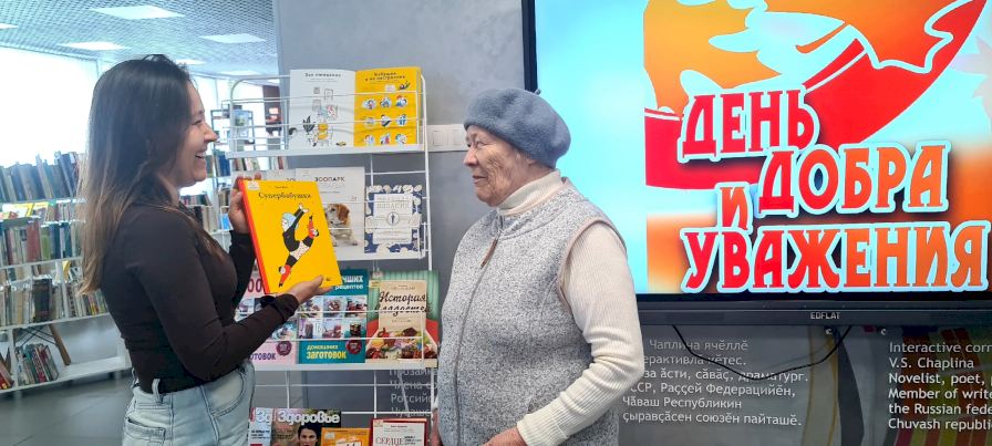 В рамках празднования в библиотеке имени В. Чаплиной прошла душевная поздравительная акция «Славим возраст золотой!». Акция была организована с целью выразить уважение и благодарность старшему поколению, создать атмосферу тепла и уюта для людей пенсионного возраста. Сегодня прозвучали самые теплые слова благодарности всем пожилым людям за их добросовестный труд, за их огромный жизненный опыт, доброту, мудрость.