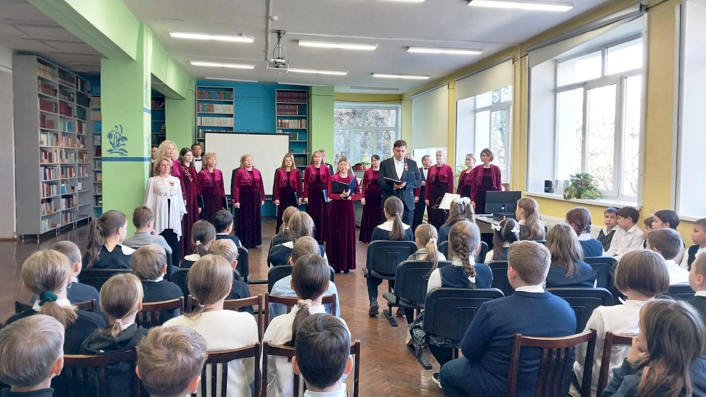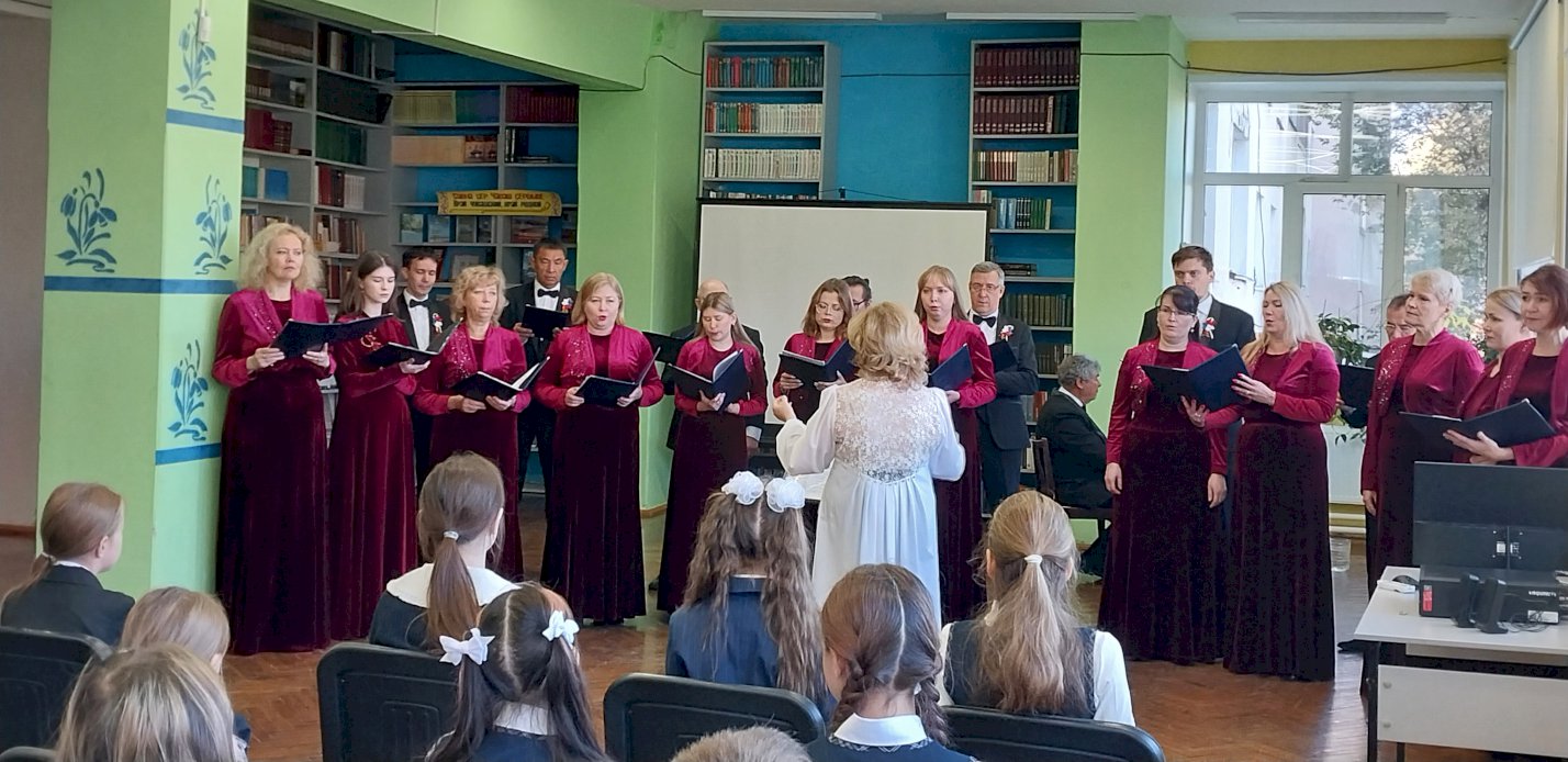 В честь этого события в библиотеке им. М. Сеспеля прошел особенный патриотический концерт. Перед учащимися СОШ №35 выступил хор «Капеллы "Классика"» под руководством художественного руководителя и главного дирижера, заслуженного работника ЧР Александры Васильевой.