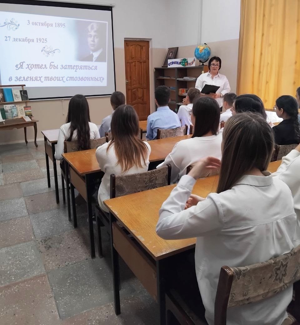 К 130-летию русского поэта Сергея Есенина сотрудники Центра семейного чтения им. В. Чапаева организовали литературно-музыкальную композицию «Я хотел бы затеряться в зеленях твоих стозвонных». На встречу были приглашены ученики 8-х классов СОШ №60.