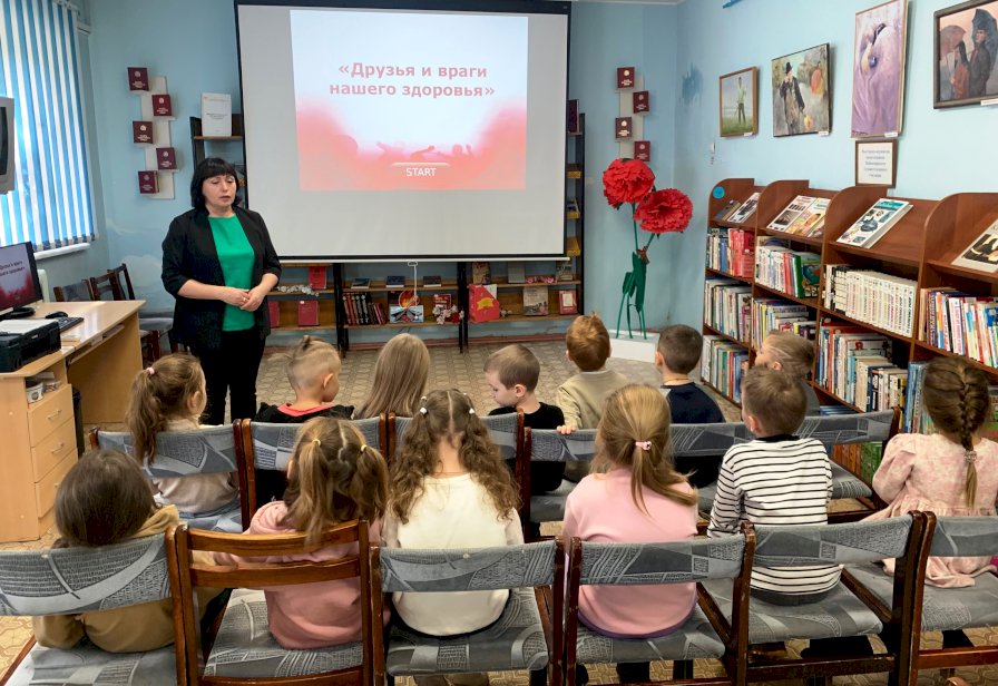 В детской библиотеке им. Х. Степанова для воспитанников группы «Умнички» частного детского сада ЛЕОCLUB (ЛЕОКЛУБ) прошёл урок здоровья «Друзья и враги нашего здоровья». Мероприятие началось с беседы о здоровье, полезных и вредных привычках, а также важности соблюдения режима дня. Затем ребята вместе с ведущей отправились в увлекательное путешествие в страну Здоровья и отвечали на вопросы, посвящённые аспектам здорового образа жизни: питанию, ЗОЖ, гигиене, здоровью зубов и спорту. Викторина включала вопросы и загадки, которые выявили знания детей о полезных и вредных продуктах и привычках.