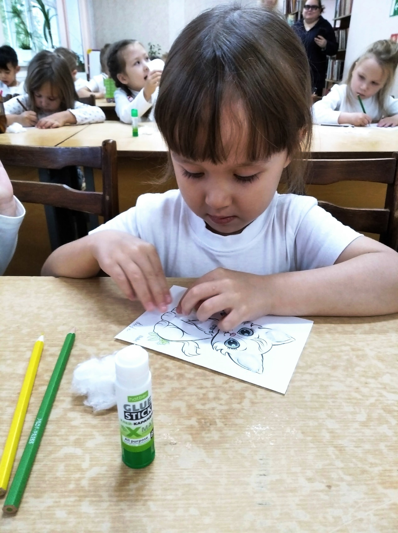Все дети любят маленьких котят. На творческом мастер-классе «Чудо-кошечка» ребята из бумаги и ватных дисков изготовили чудесную красавицу. Носик и глазки раскрасили цветными карандашами, а пушистую шерсть сделали из ваты. У всех получились милые котята.