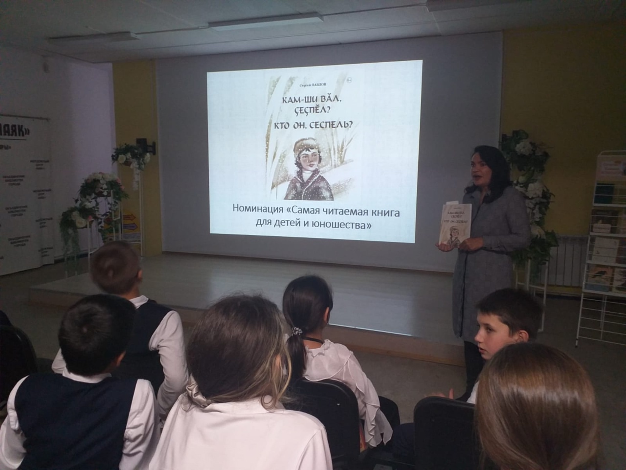 В рамках этого праздника в отделе художественной и детской литературы Центральной городской библиотеки им. В. Маяковского прошли громкие чтения книги Сергея Павлова «Кам-ши вăл, Çеçпĕл? Кто он, Сеспель?», которая участвует в фестивале-конкурсе «Литературная Чувашия: книга года-2024», с учащимися 5 класса школы № 39.