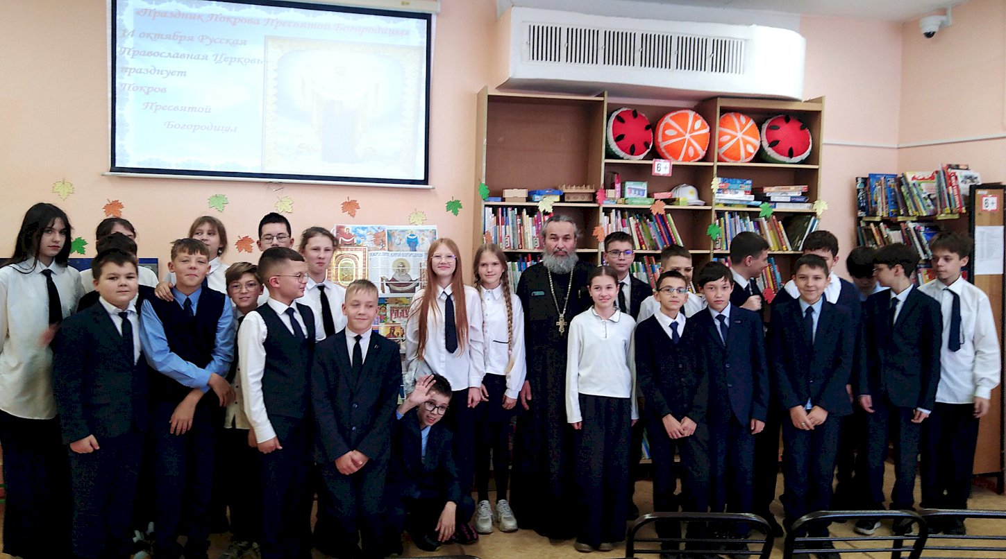 В завершение отец Петр по традиции ответил на вопросы учеников, поздравил их с праздником Покрова Пресвятой Богородицы.