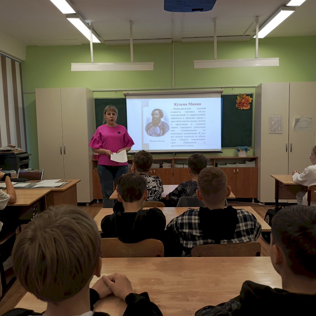 28 октября в преддверии праздника сотрудники отдела отраслевой литературы Центральной городской библиотеки им. В. Маяковского провели мероприятие для учащихся 6-го класса СОШ № 39. Познакомили их с историей появления праздника Дня Народного Единства. Затем ученики посмотрели интересный видеоролик, рассказывающий о подвигах героев тех времен — Кузьме Минине и Дмитрии Пожарском.