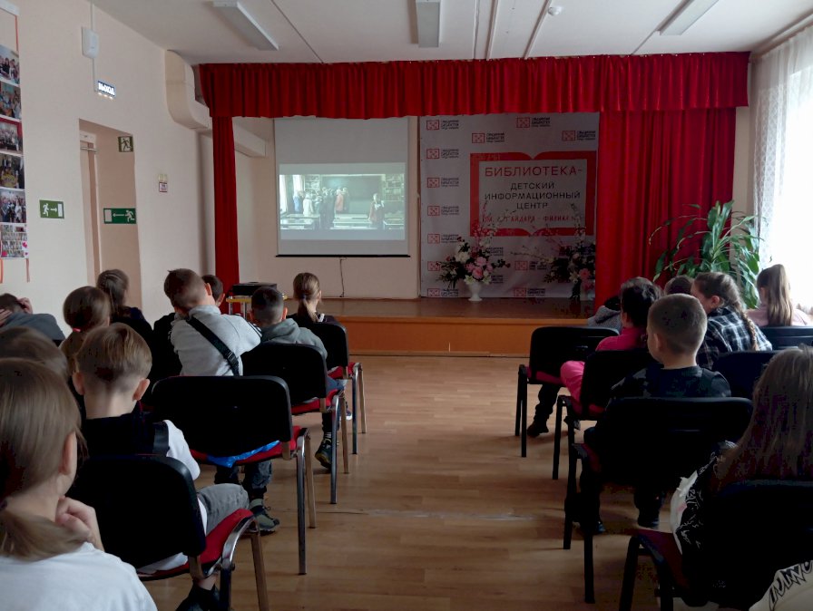 Юные читатели Библиотеки им. А. Гайдара — кадеты МБОУ «СОШ № 22 им. Героя РФ Н.Ф. Гаврилова» — приняли участие в тематическом кинолектории, посвящённом творчеству мастера детской литературы.